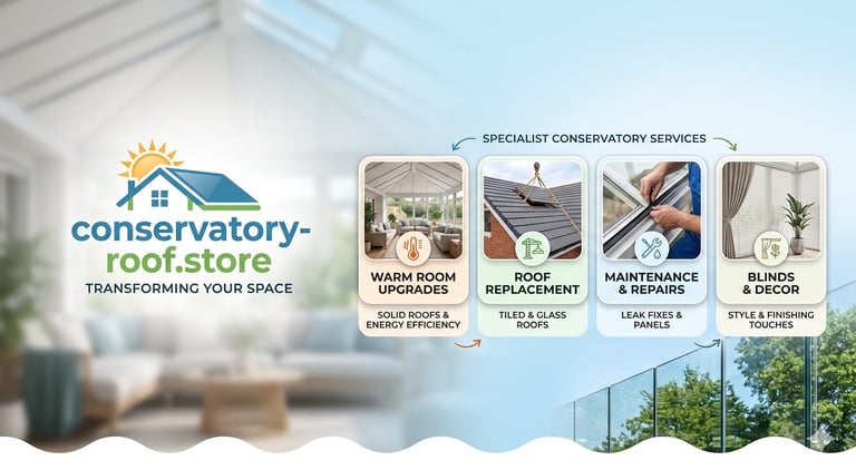 Conservatory Roof Replacement - Conservatory Roof Insulation - Conservatory Leaks & Fixes - Window Replacement - Blind Fitting - Window Replacement